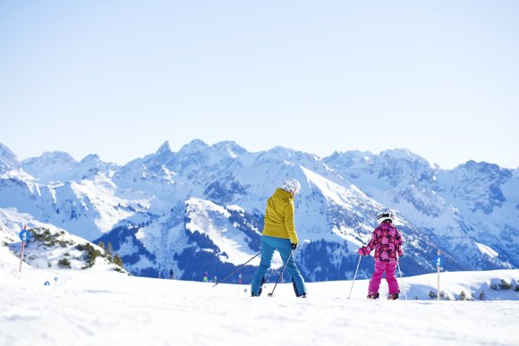 Für die kleinsten Skifreunde und Einsteiger sind am Ifen Burmis Winterwelt und der Gaisbühllift in Betrieb.